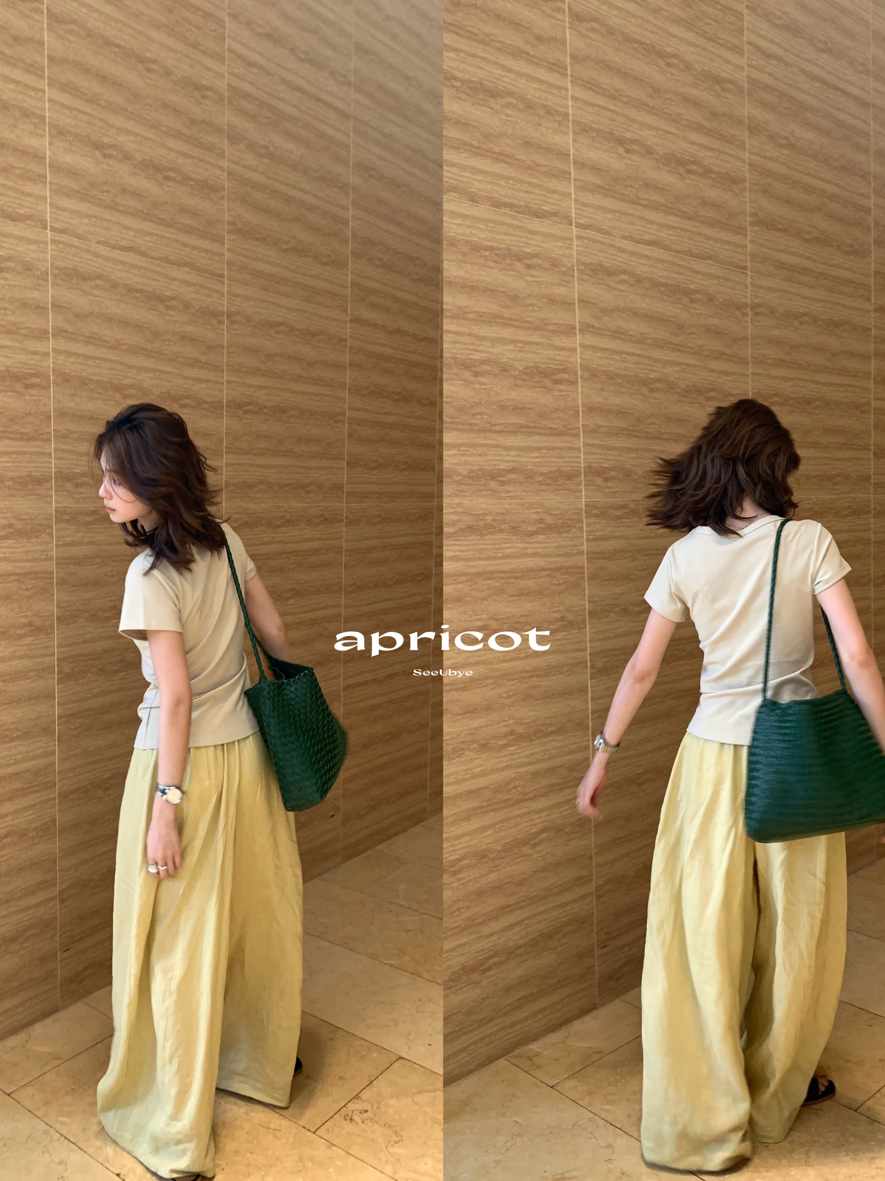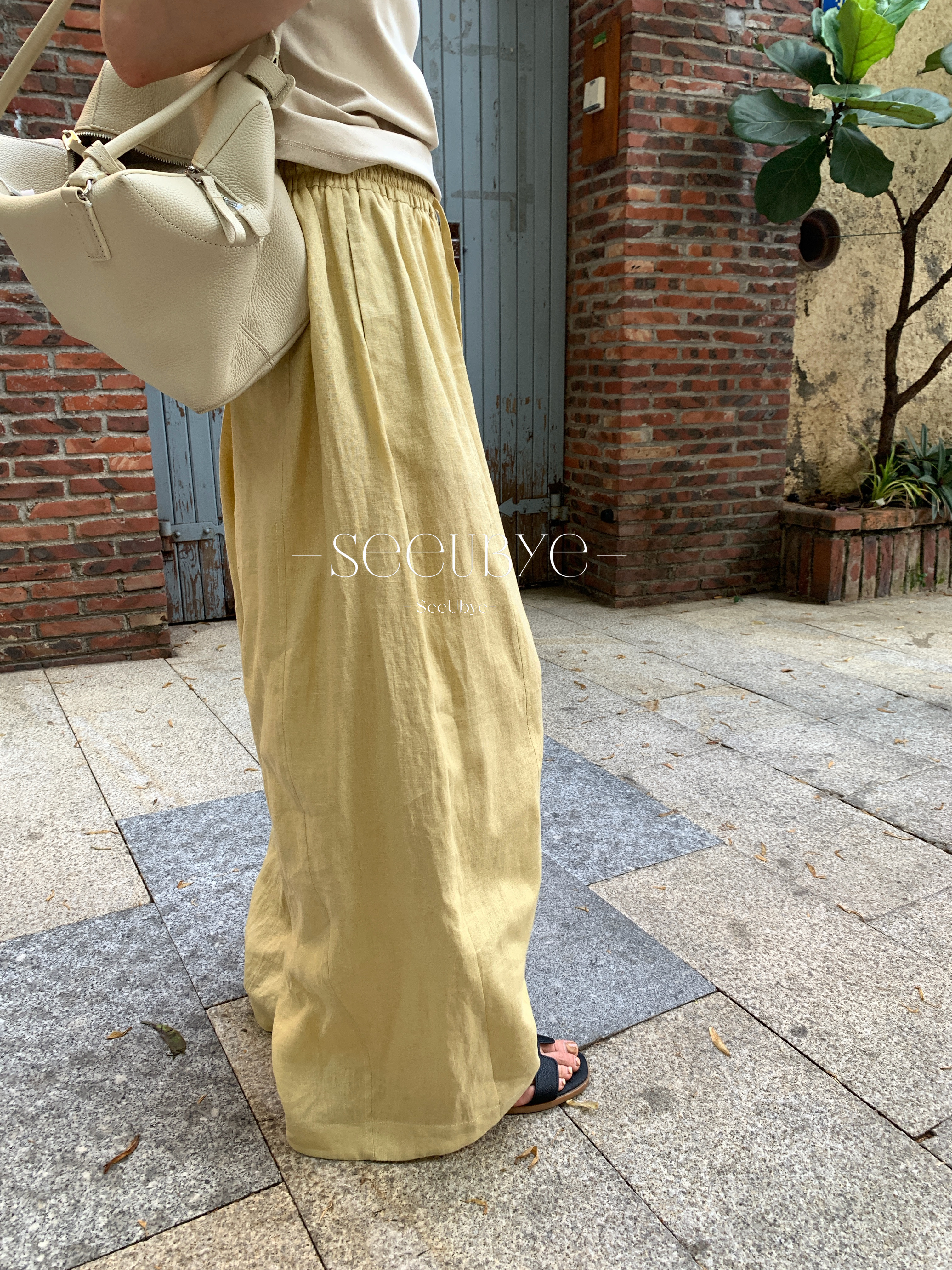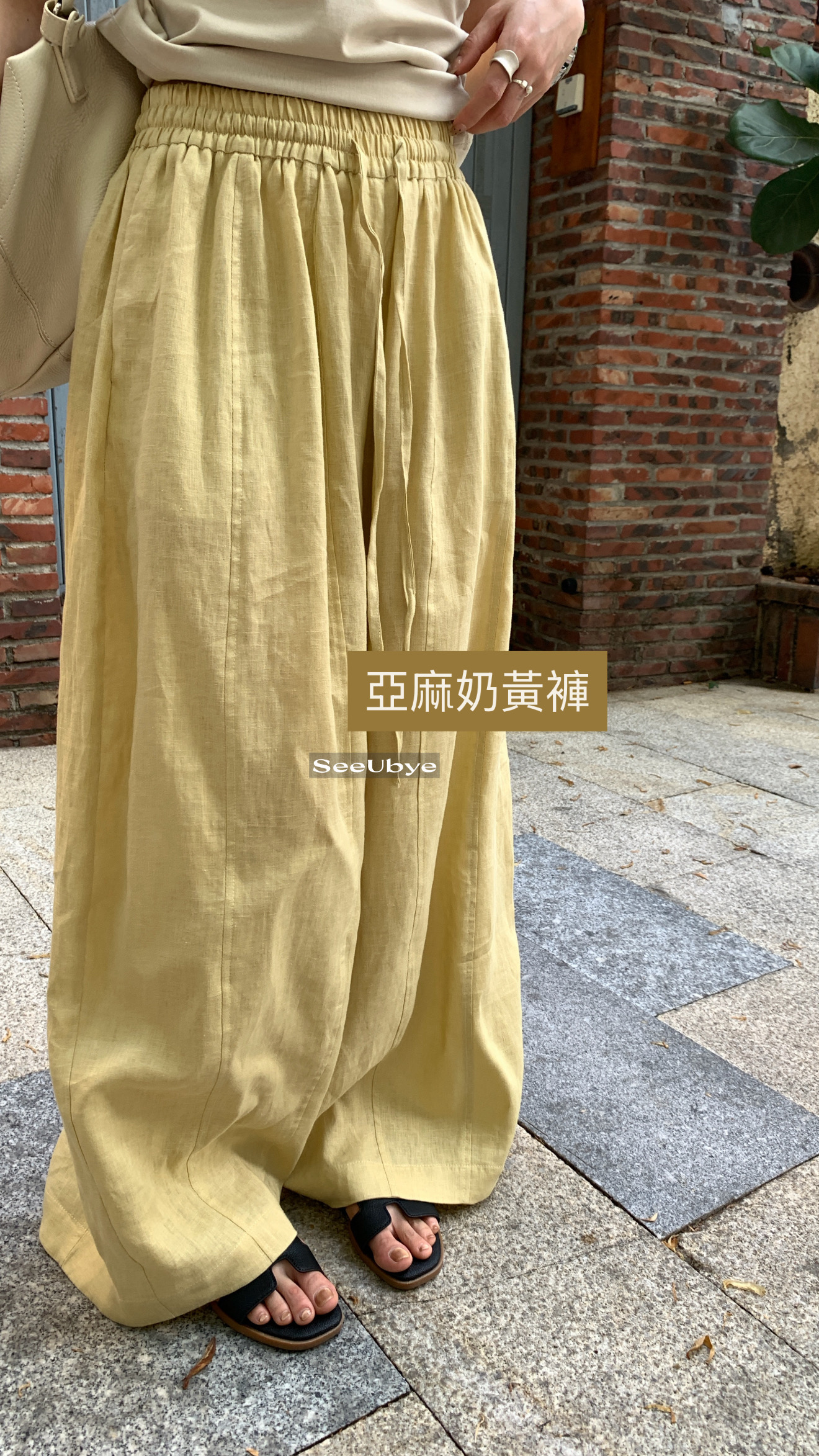 對各種身材都包容 闊腿褲型藏肉又顯腿長 垂感剛好不會貼腿 奶黃色是調了好幾次的溫柔色調