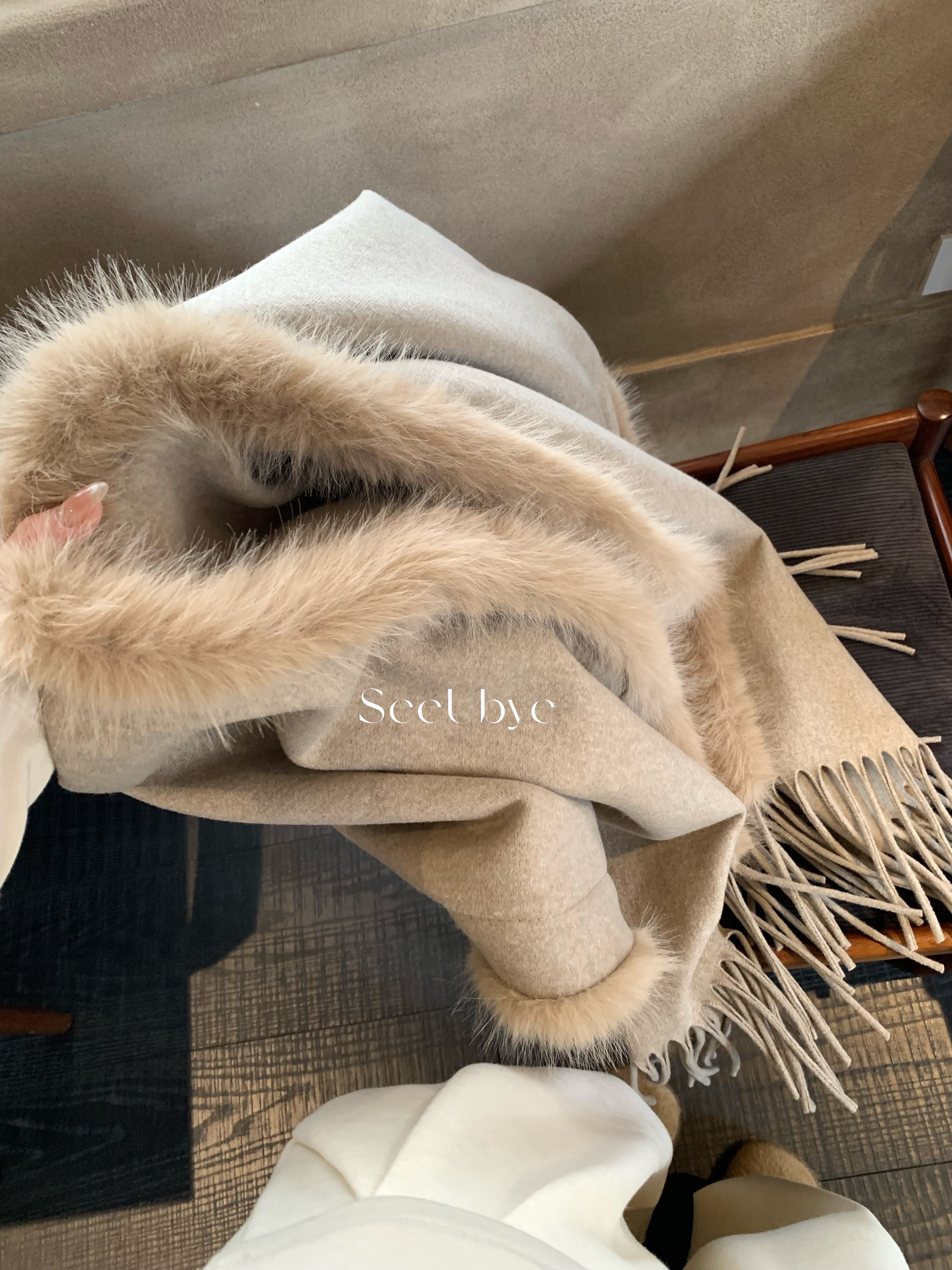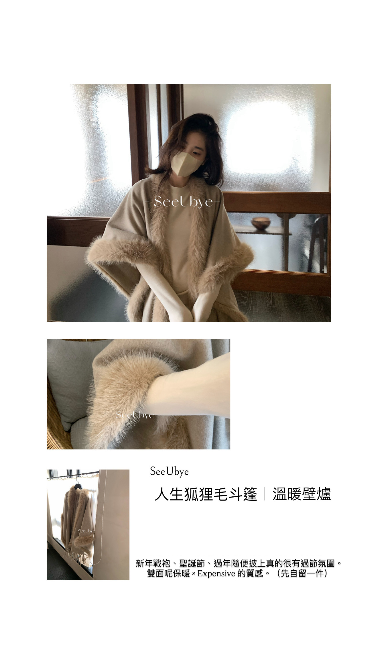 人生狐狸毛斗篷|超溫暖壁爐
