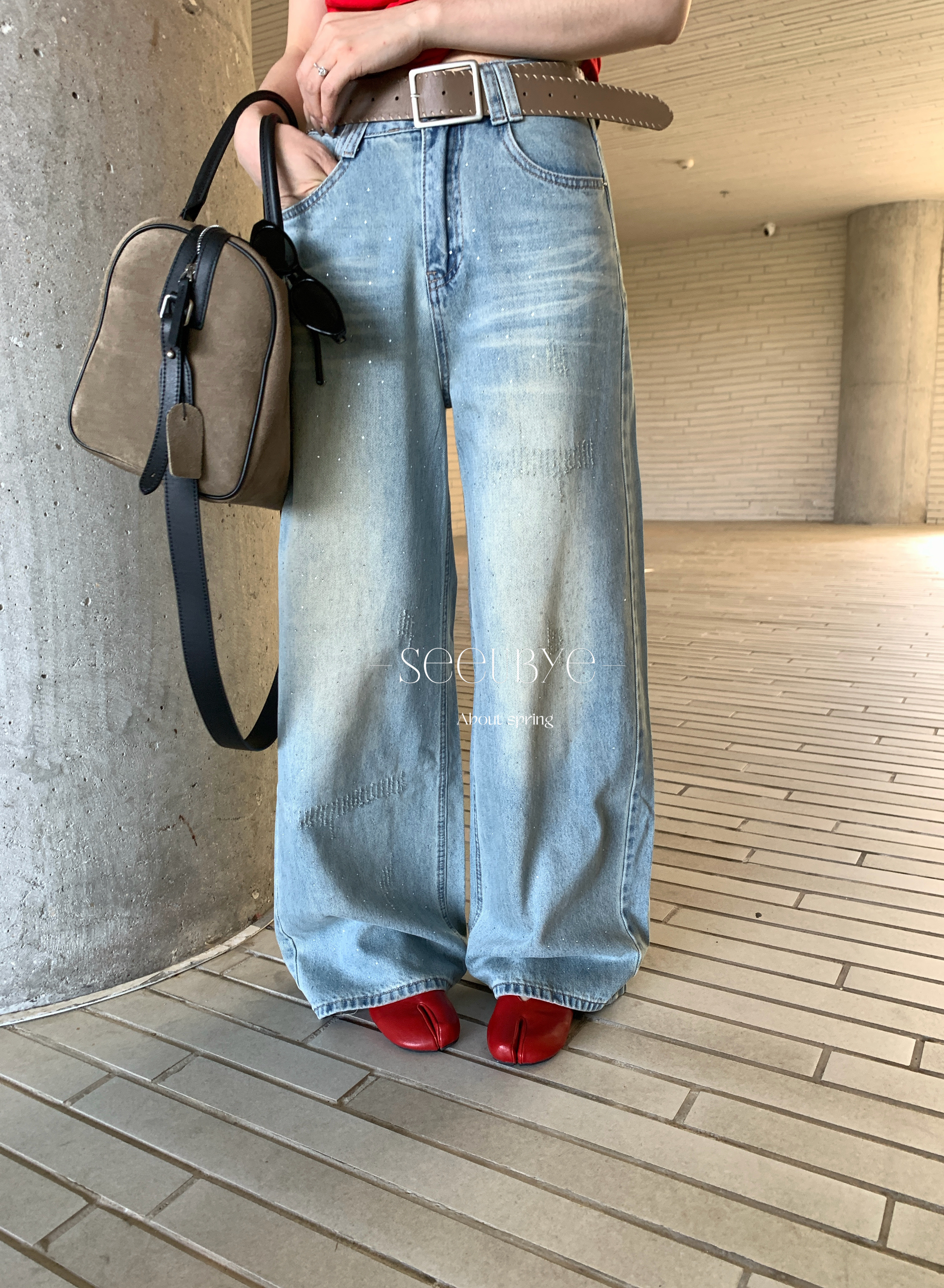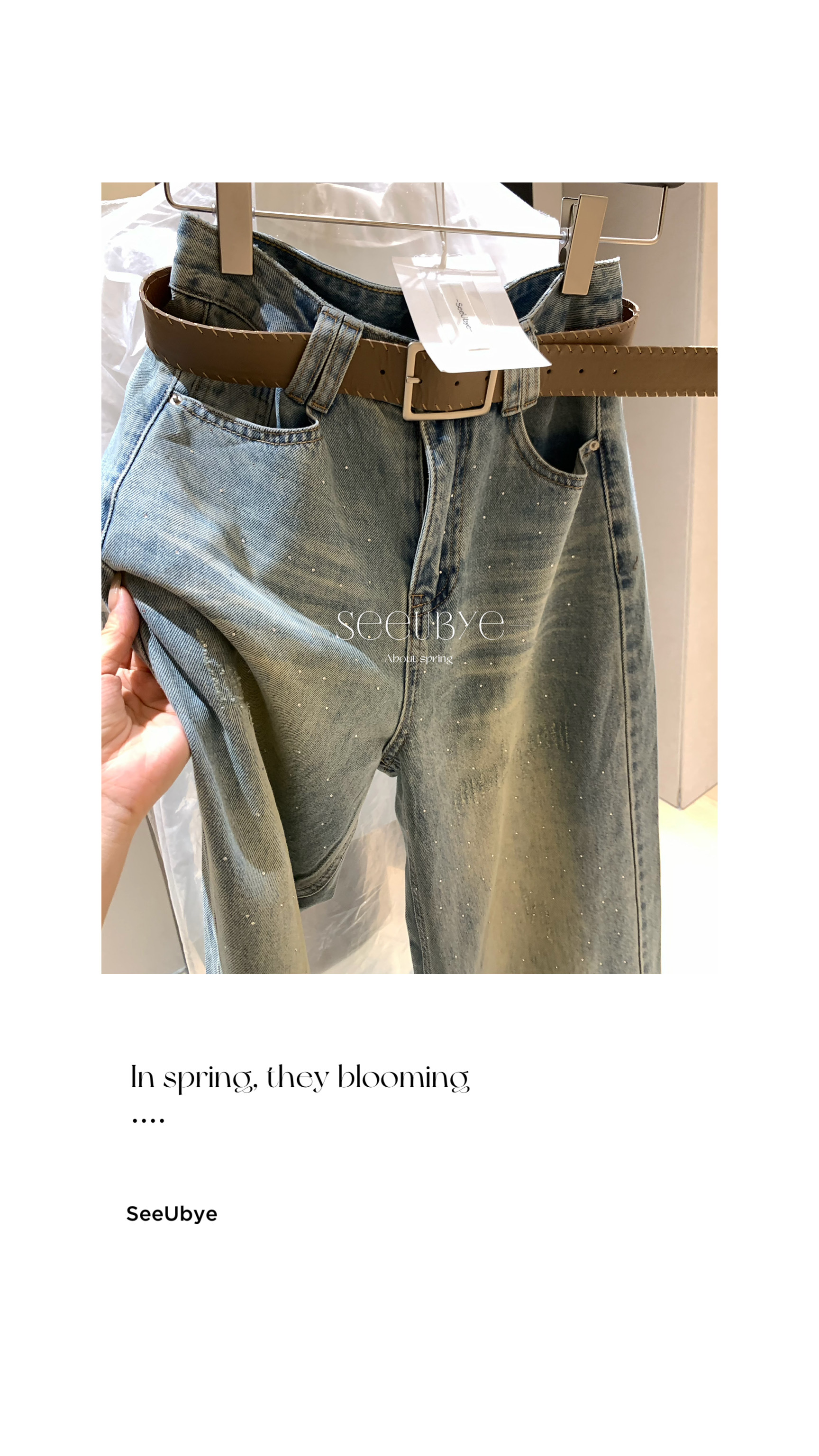時髦小細亮片牛仔褲