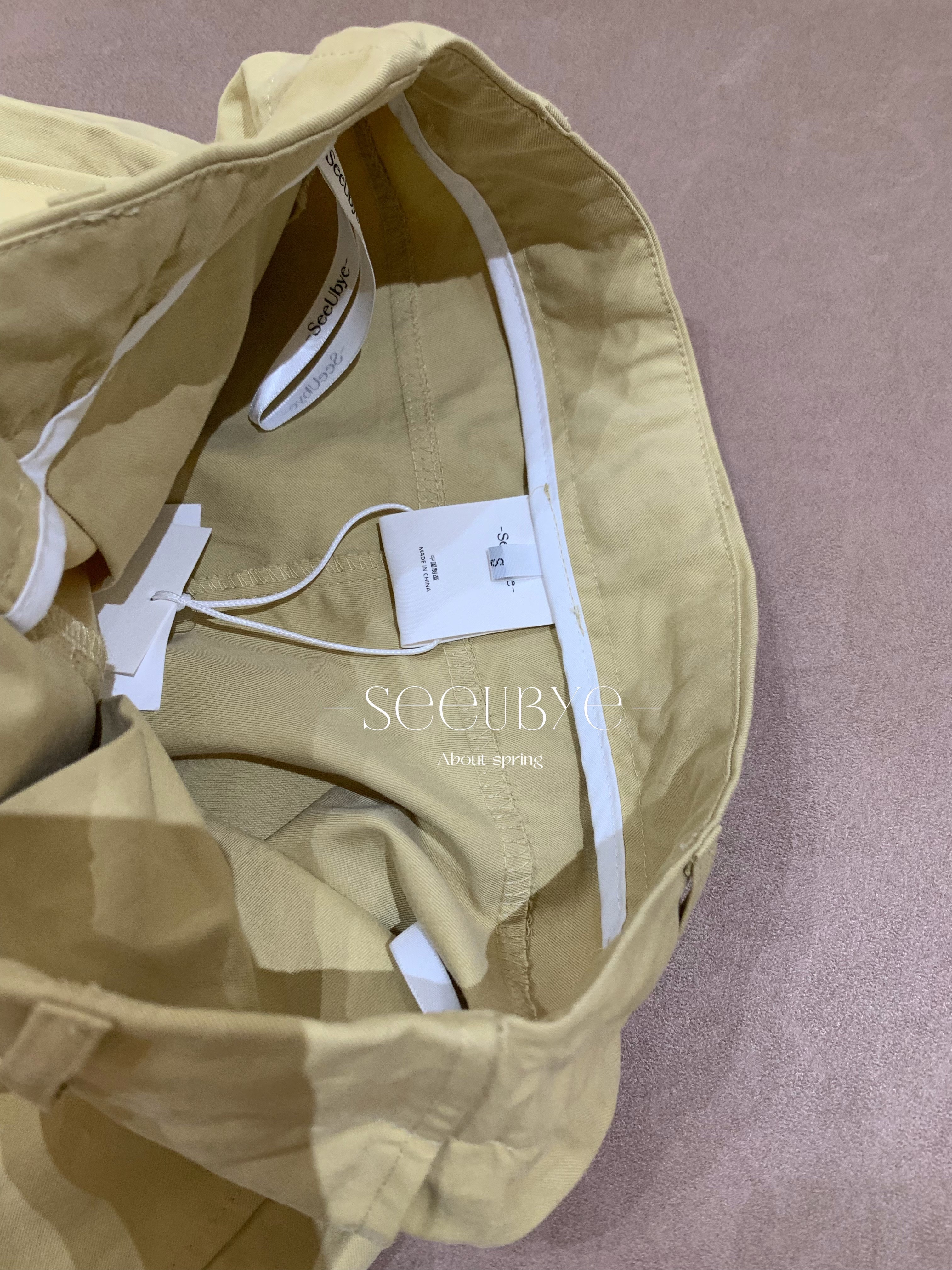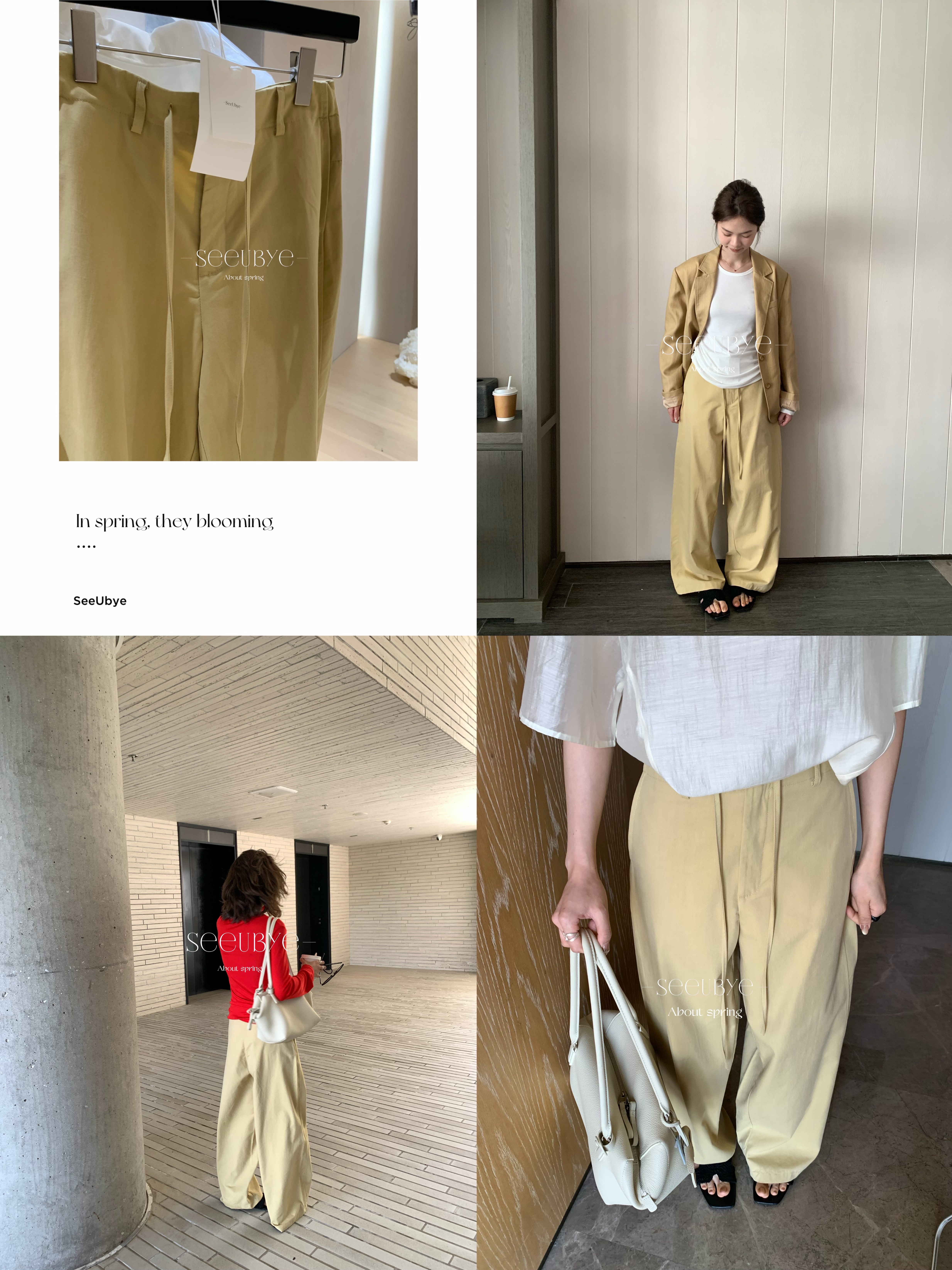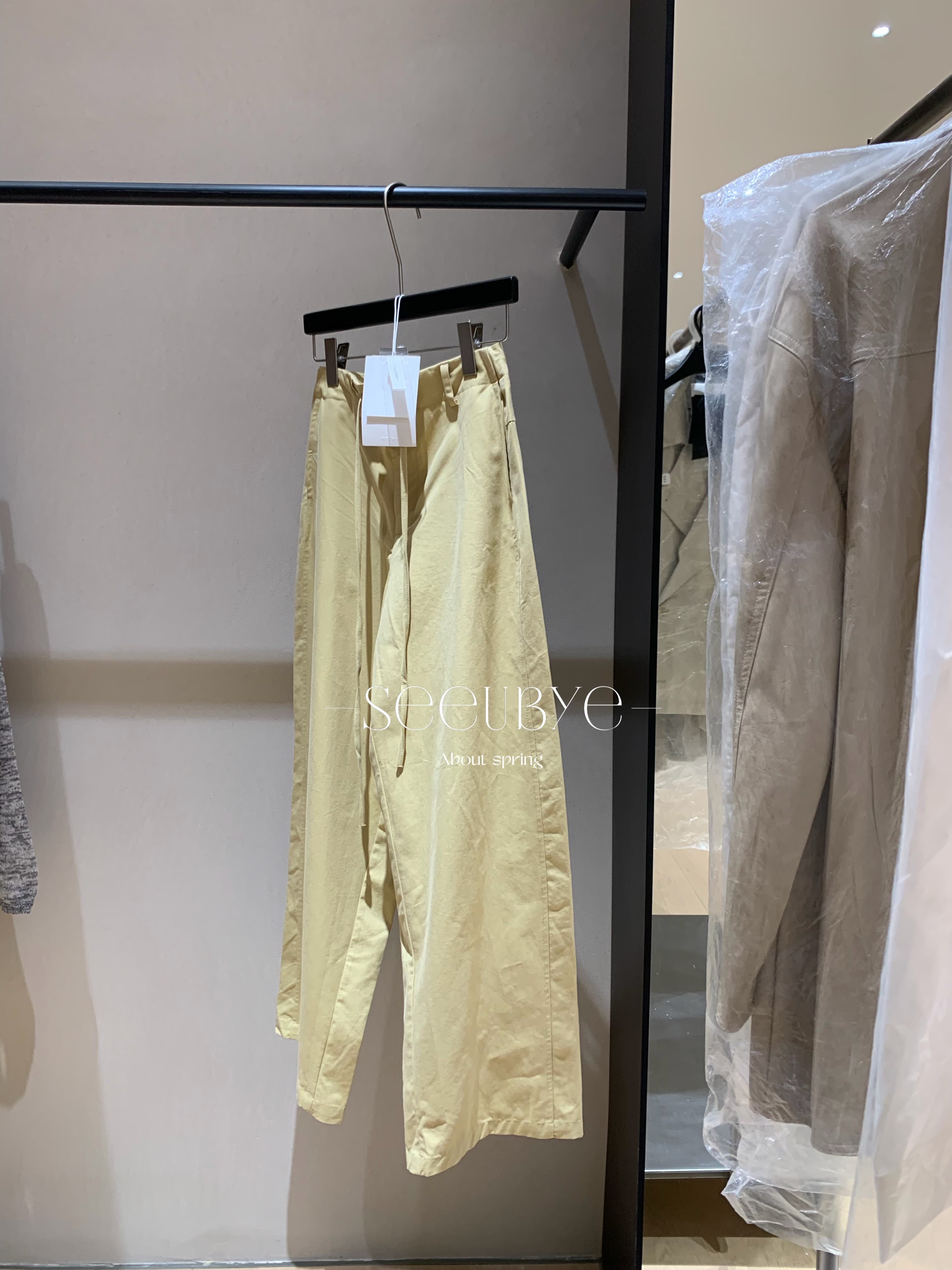 淡黃drawstring直筒褲