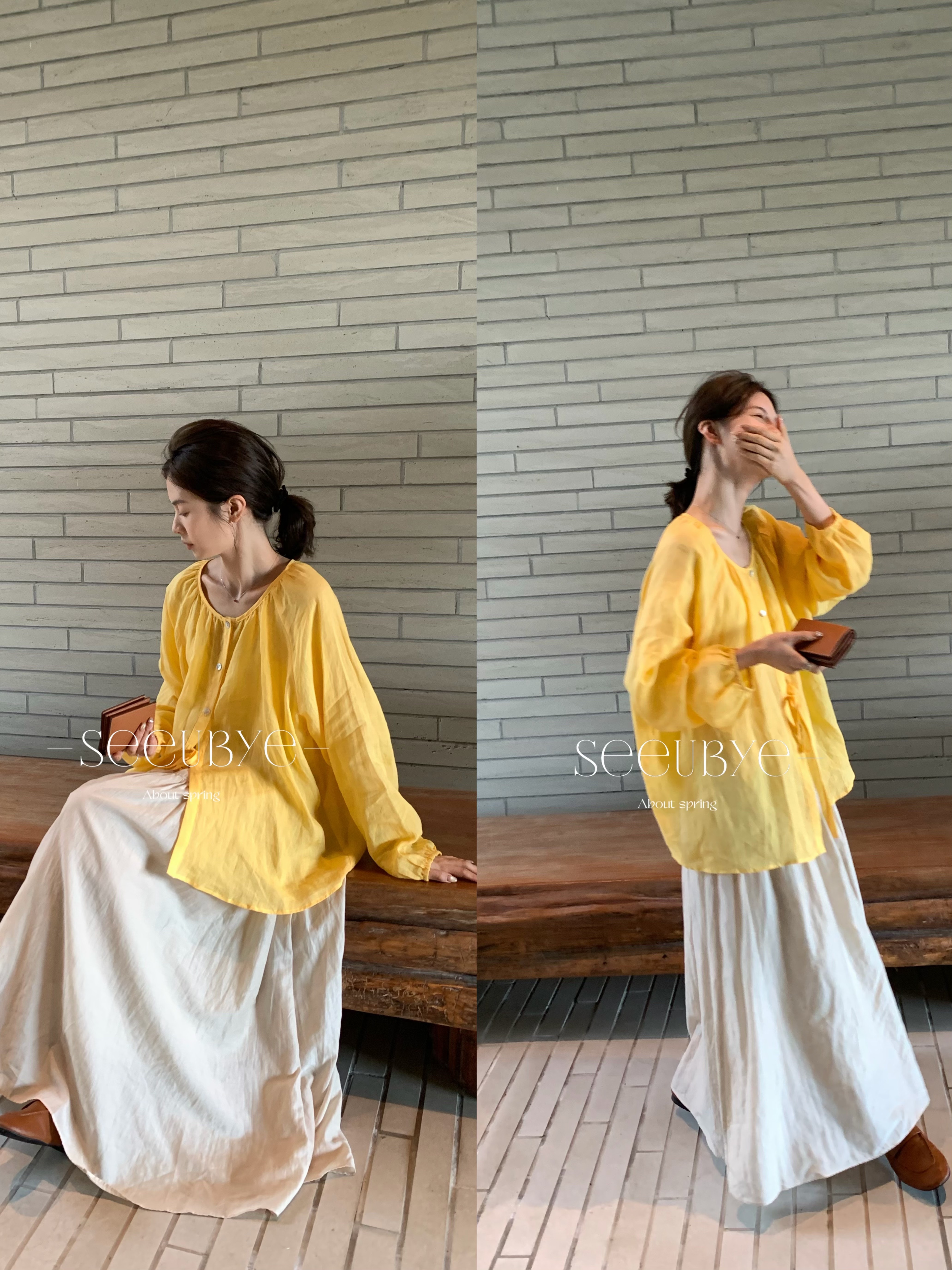 一條亞麻奶黃神褲